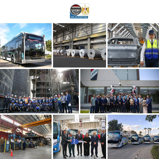 وخلال عام 2025، أولت الوزارة اهتمامًا خاصًا بإحياء وتطوير الأصول الصناعية المتوقفة منذ سنوات، وفي مقدمتها استكمال مشروعات إحياء وتطوير شركة النصر للسيارات، التي عادت إلى العمل والإنتاج في الربع الأخير من عام 2024، بعد توقف دام أكثر من 15 عاما، حيث توسعت في إنتاج أتوبيسات “نصر سكاي” السياحية بمواصفات عالمية، مع رفع نسبة المكون المحلي من 52% إلى 63.5% خلال عام واحد، والتعاقد على تصنيع وتوريد 250 أتوبيس لصالح شركتي شرق وغرب الدلتا للنقل والسياحة، إلى جانب توريدات لجهات أخرى، مع التوسع في إضافة منتجات جديدة مثل ميني باص “نصر ستار” بنسبة مكون محلي تجاوزت 70%، وتسليم الدفعة الأولى للعمل بمدينة العلمين الجديدة، والبدء في التجهيز لإنتاج أتوبيسات وميني باصات كهربائية، والانتهاء من تطوير شامل لمصنع سيارات الركوب الملاكي وتجهيزه بأحدث خطوط التجميع واللحام والدهان، مع إجراء تجارب تشغيل على نماذج من السيارات لصالح شركة النصر وعلامات تجارية أخرى.